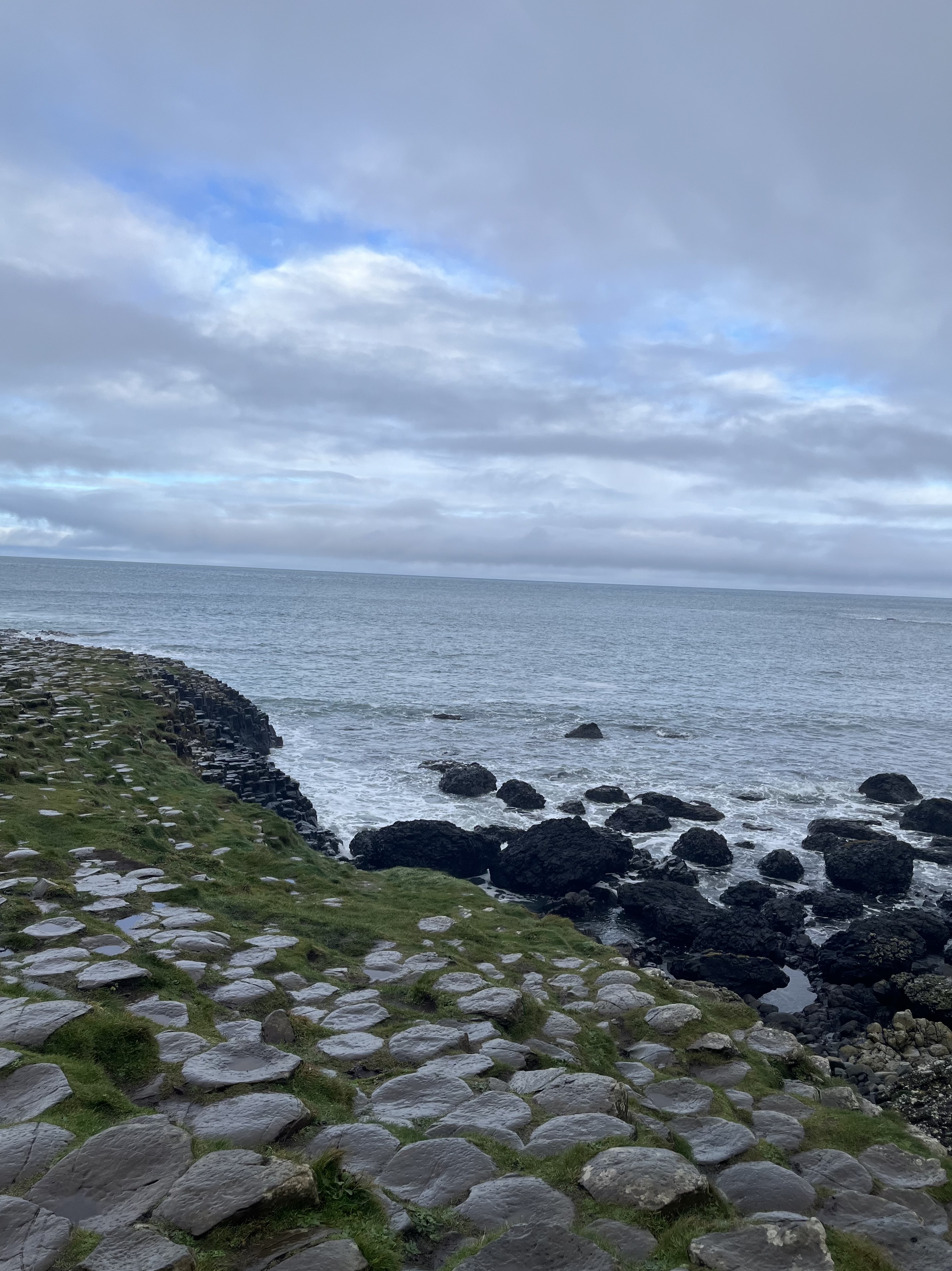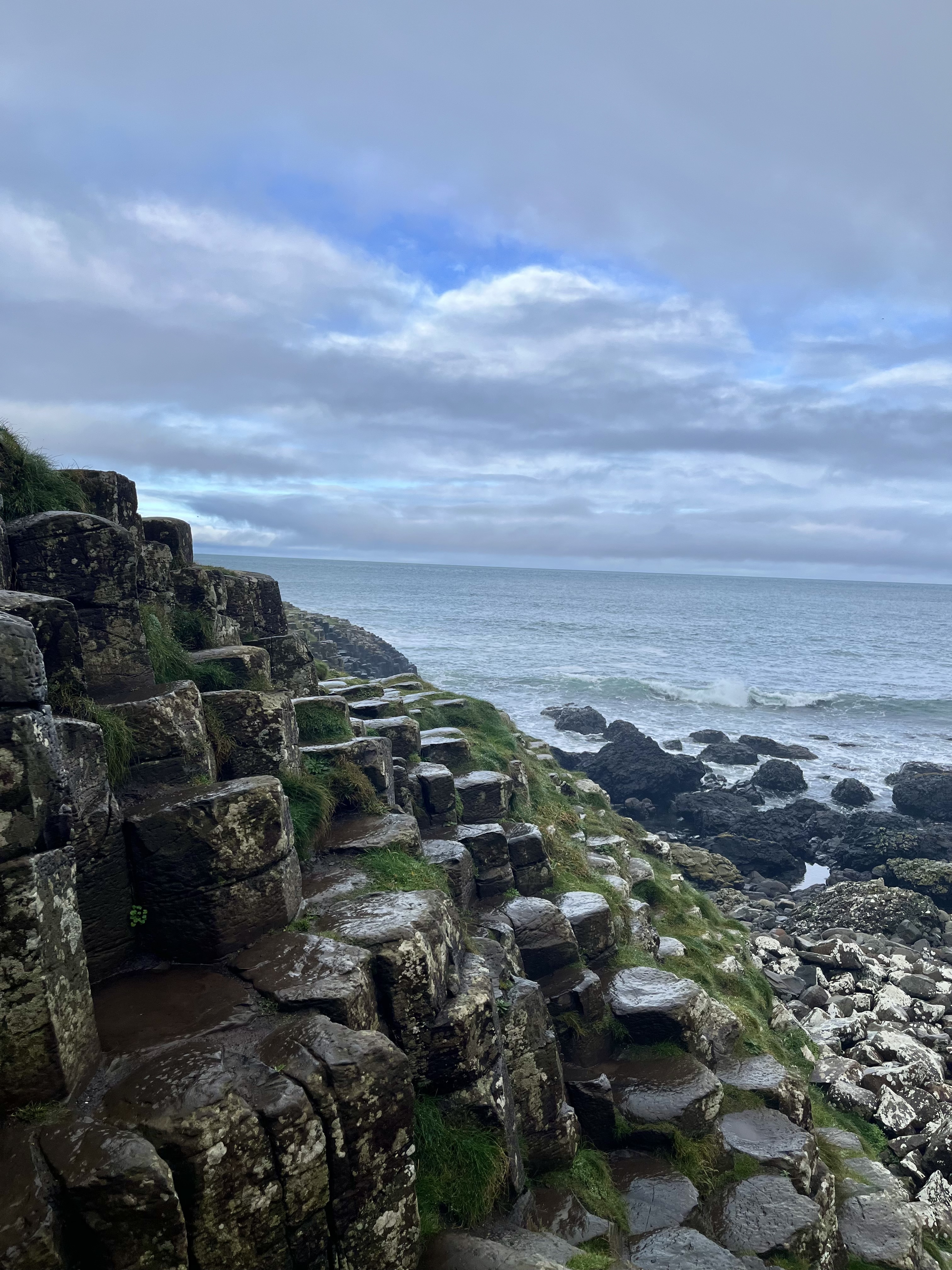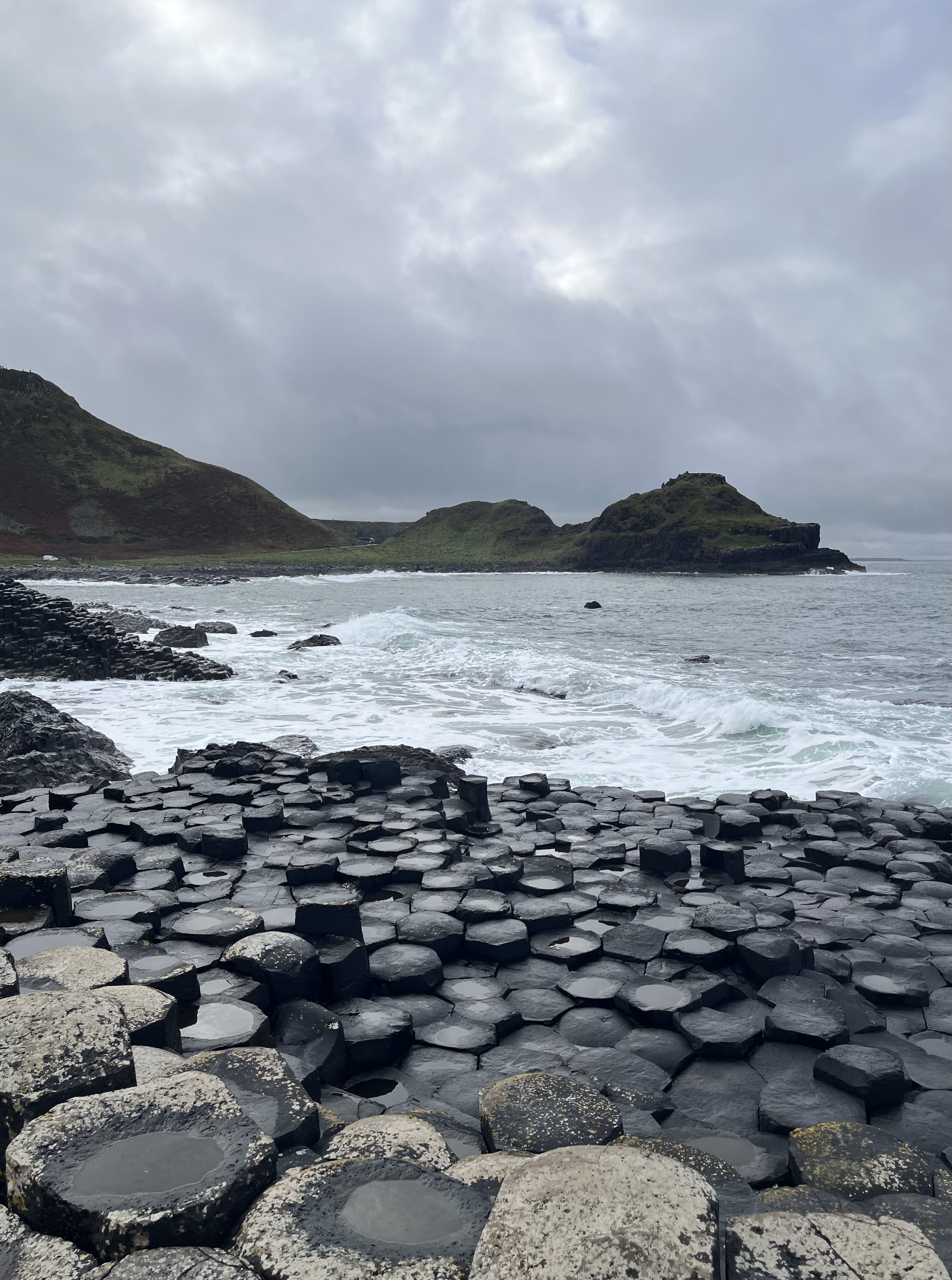 Possibly my favorite part of the whole trip- Giant’s Causeway. This is located on one of the northernmost points of Northern Ireland. From its shores, you can even see Scotland on a clear day. Local legend has it that a giant named Finn McCool once lived in Northern Ireland. When threatened by a Scottish giant named Benandonner, Finn tore up parts of Northern Ireland’s coast to create a path to Scotland to battle Benandonner. When he gets there, he notices that Benandonner was much larger than he, and he escapes disguised as a baby. Benandonner then arrives in Northern Ireland and notices this baby, thinking that if Finn’s baby is that large, Finn himself much be much larger. Benandonner then retreats back to Scotland, destroying the path on his way back, thus forming Giant’s Causeway. Scientists, on the other hand, say that the hexagonal stones were formed following the rapid cooling of lava by the sea.